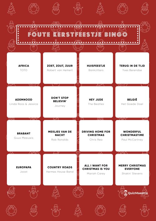 De spelregels zijn supermakkelijk, dus iedereen kan meedoen – van jong tot oud. Zet de muziek aan, kruis de liedjes af die je hoort en zing mee met klassiekers als All I Want for Christmas en Last Christmas. 🎶
