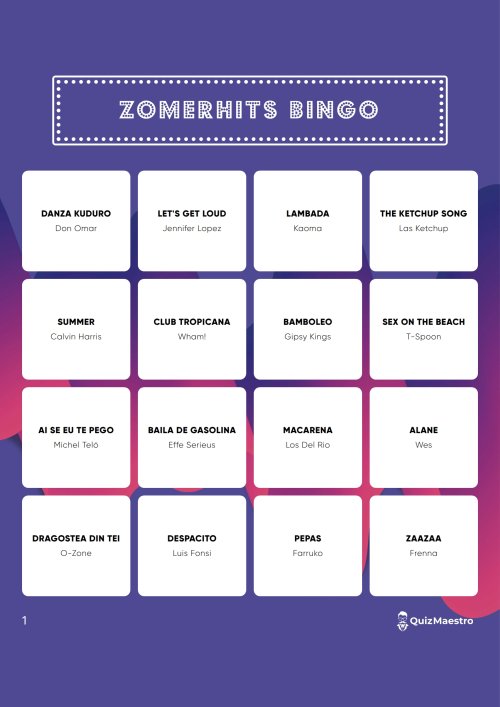 Je speelt de Zomerhits Bingo eenvoudig via Spotify af. Je hebt hier geen abonnement voor nodig, al is het wel handig als je Spotify premium hebt. Dit zijn 10 nummers die je kunt verwachten.